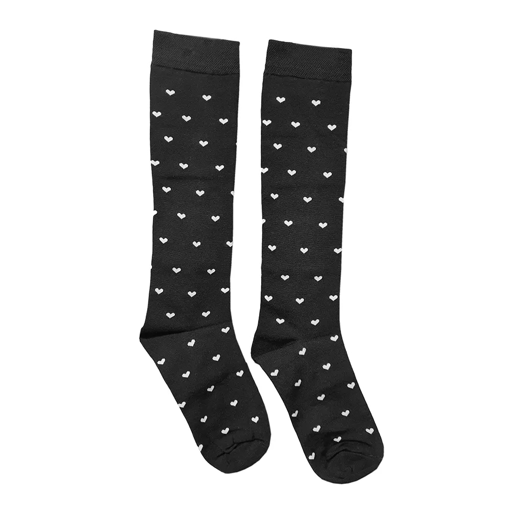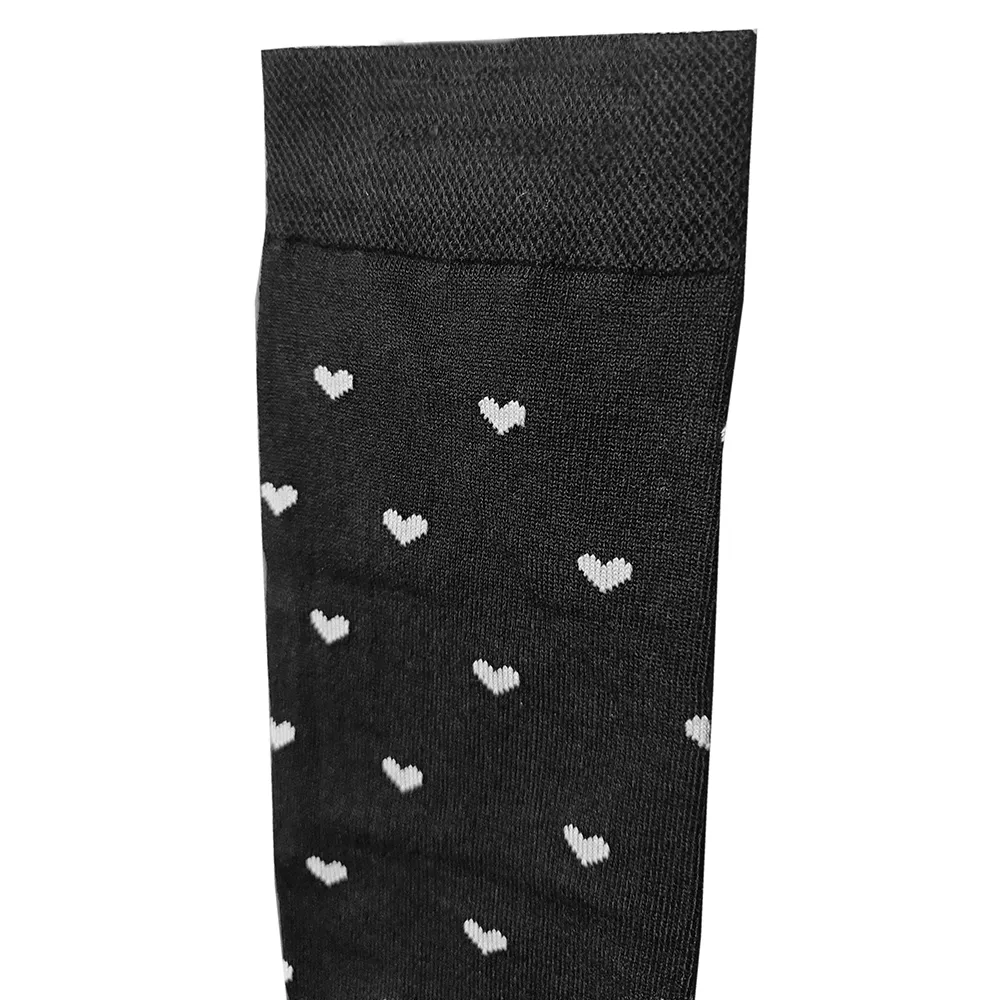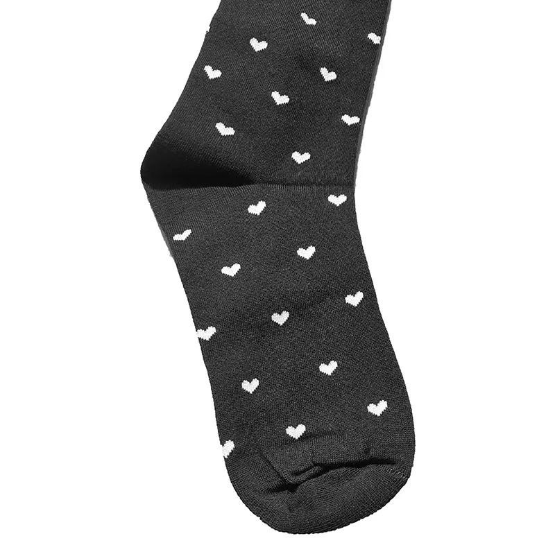 جوراب زنانه نخی مشکی با طرح قلب و خط سفید کد 1052 عدد