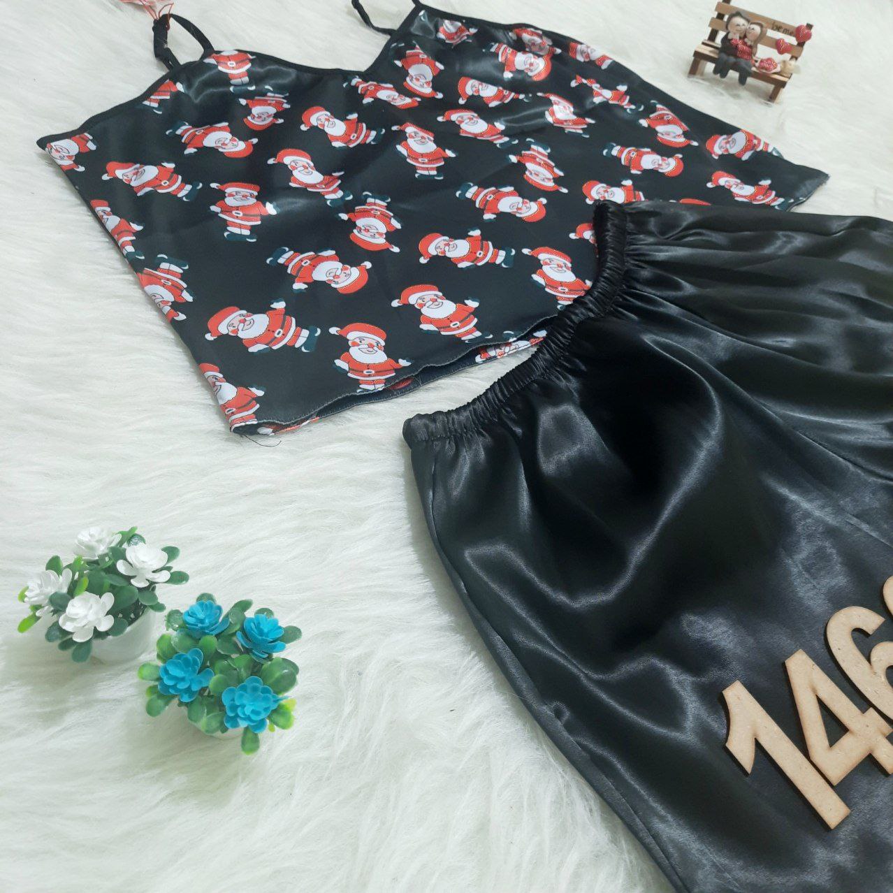 ست تاپ و شورت ساتن طرح بابانوئل Sita کد 1469 عدد