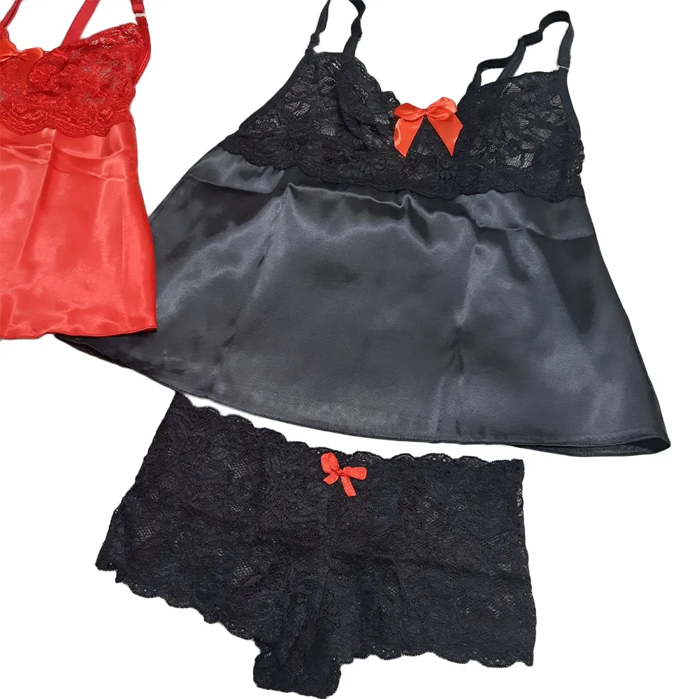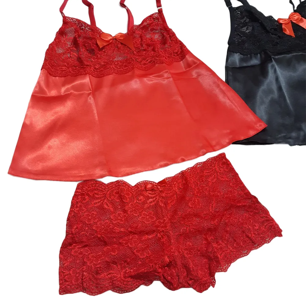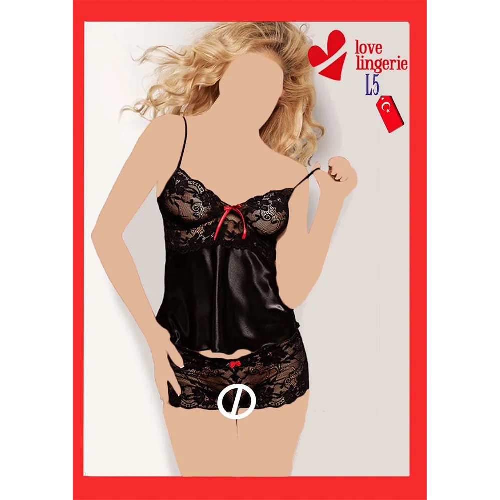 ست تاپ و شورت ساتن و دانتل لاو لاینجری کد L5