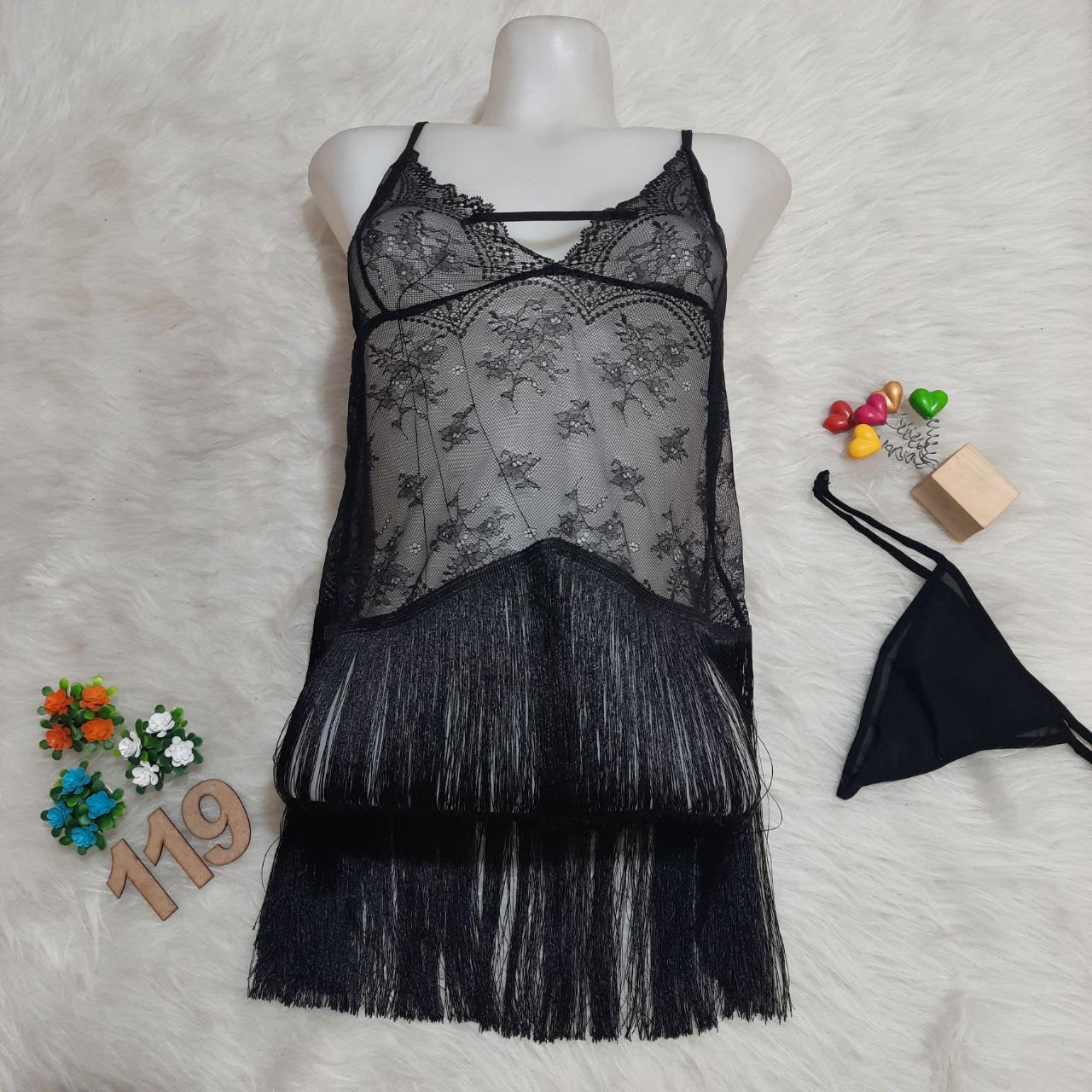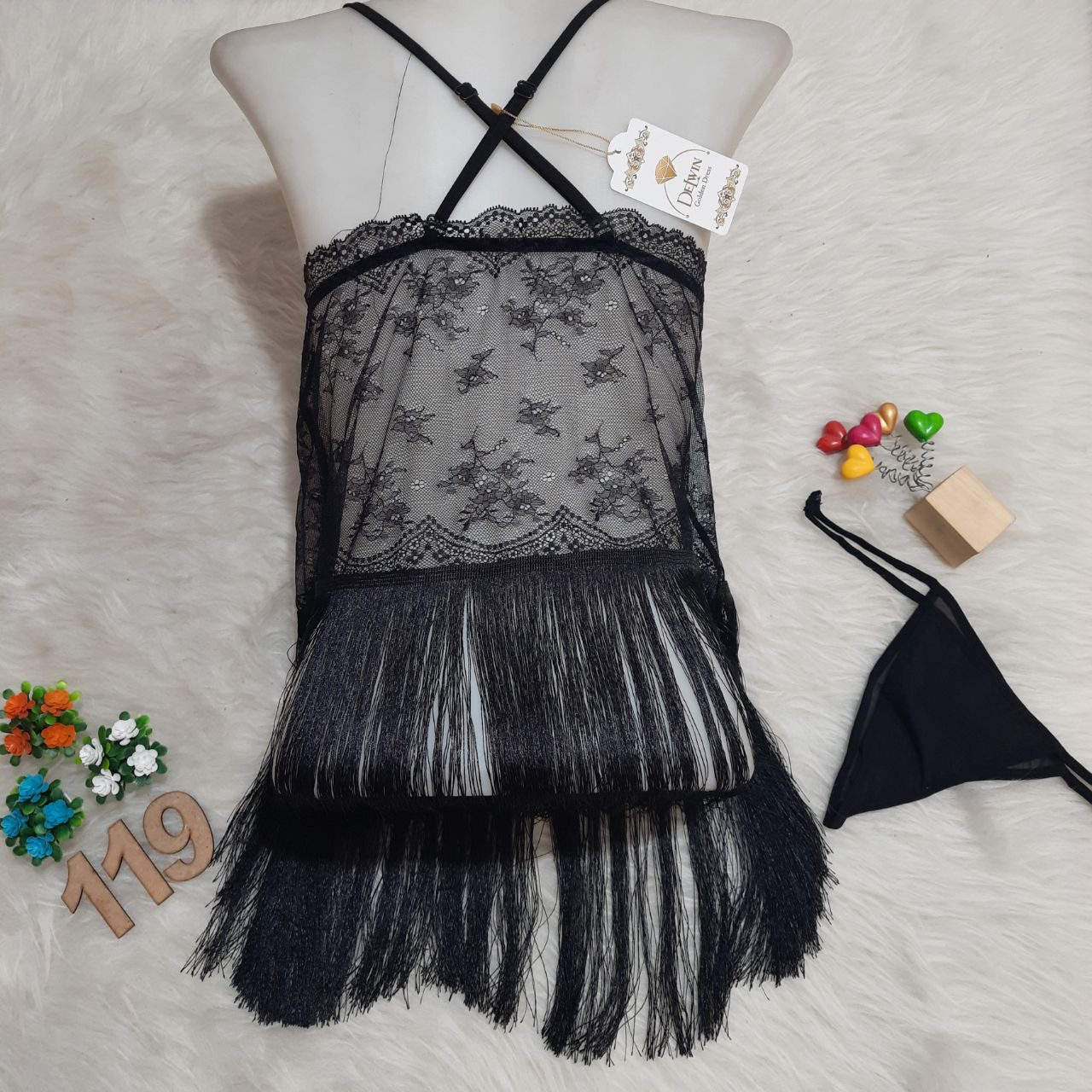 لباس خواب توری فانتزی ریسهدار Delwin کد 119