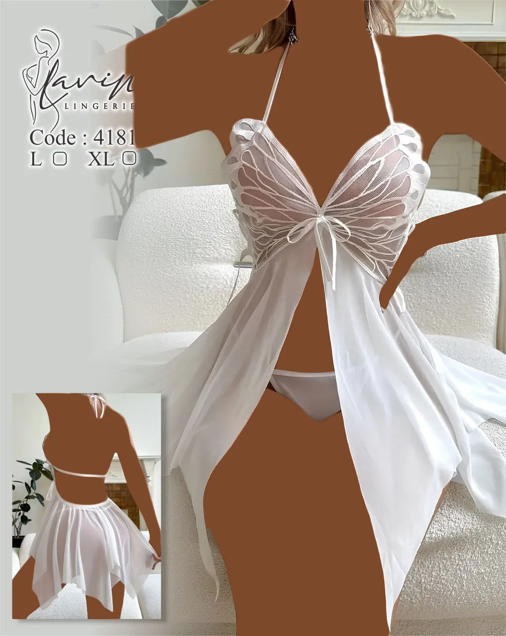 لباس خواب توری پروانه ای جلو باز Lavin کد 4181