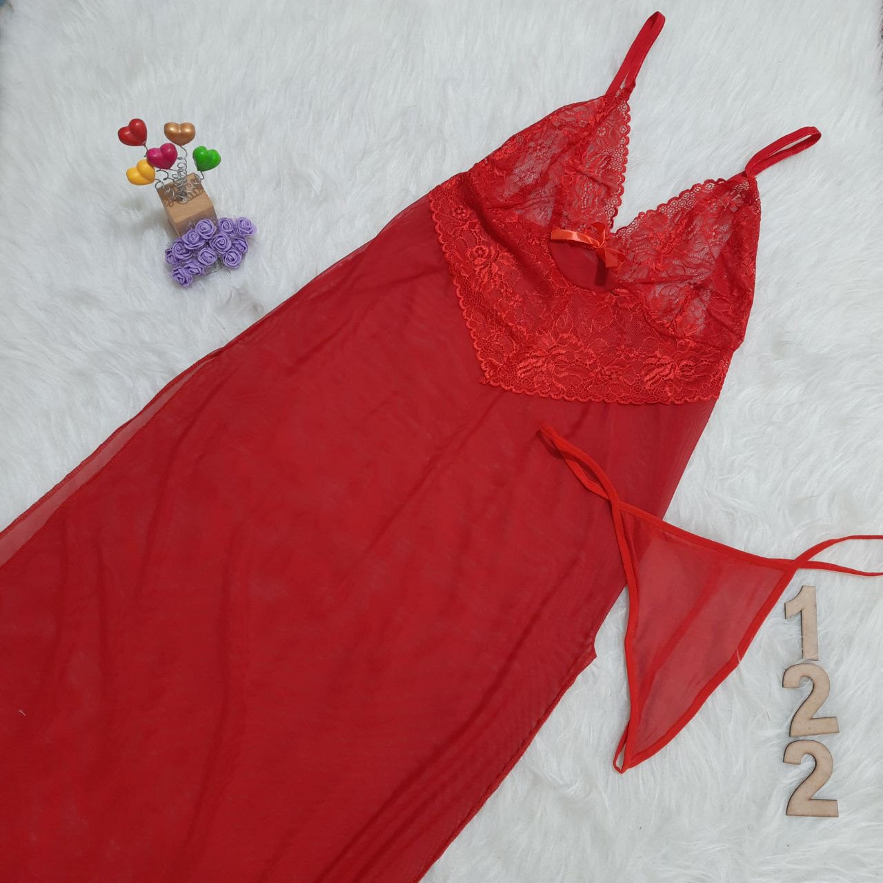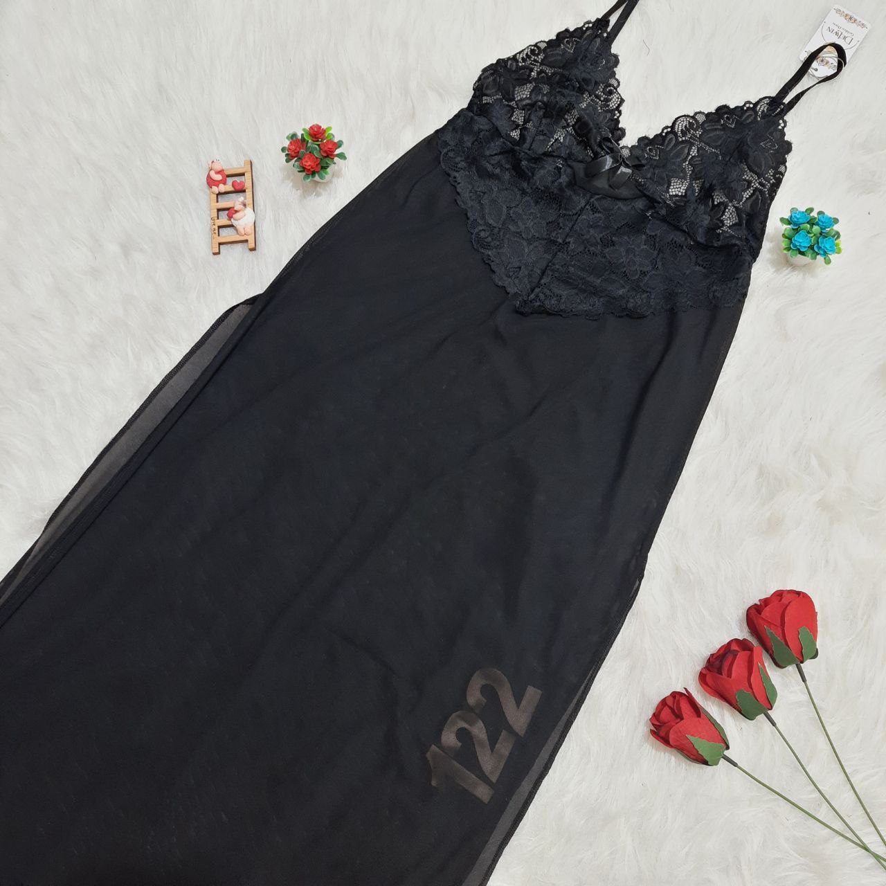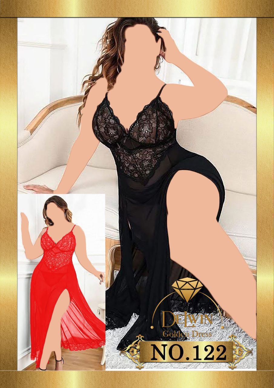 لباس خواب تور و دانتل بلند و سایز بزرگ Delwin کد 122