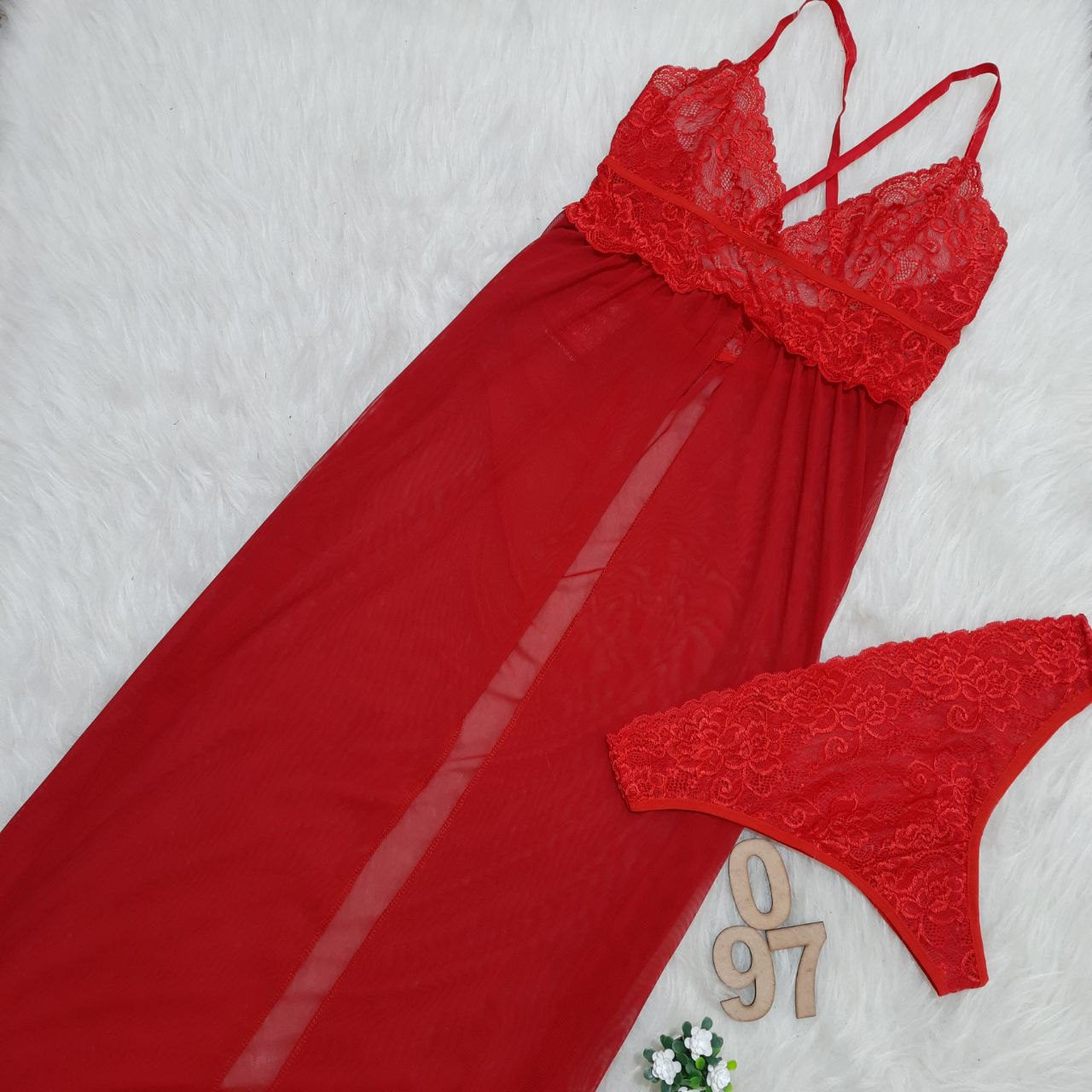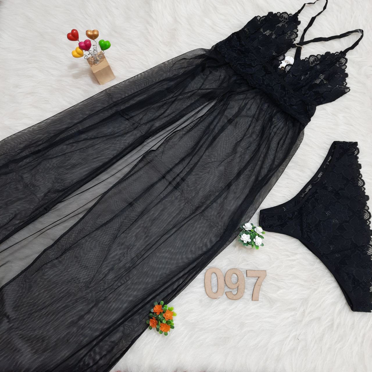 لباس خواب تور و دانتل بلند Delwin کد 097