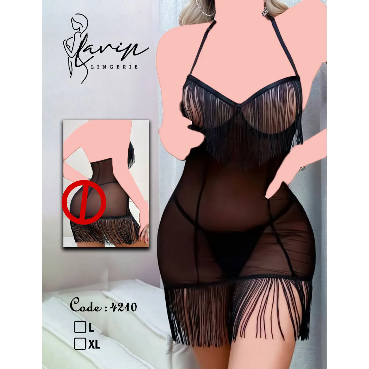 لباس خواب دامنی سینه باز ریسه ای Lavin کد 4210