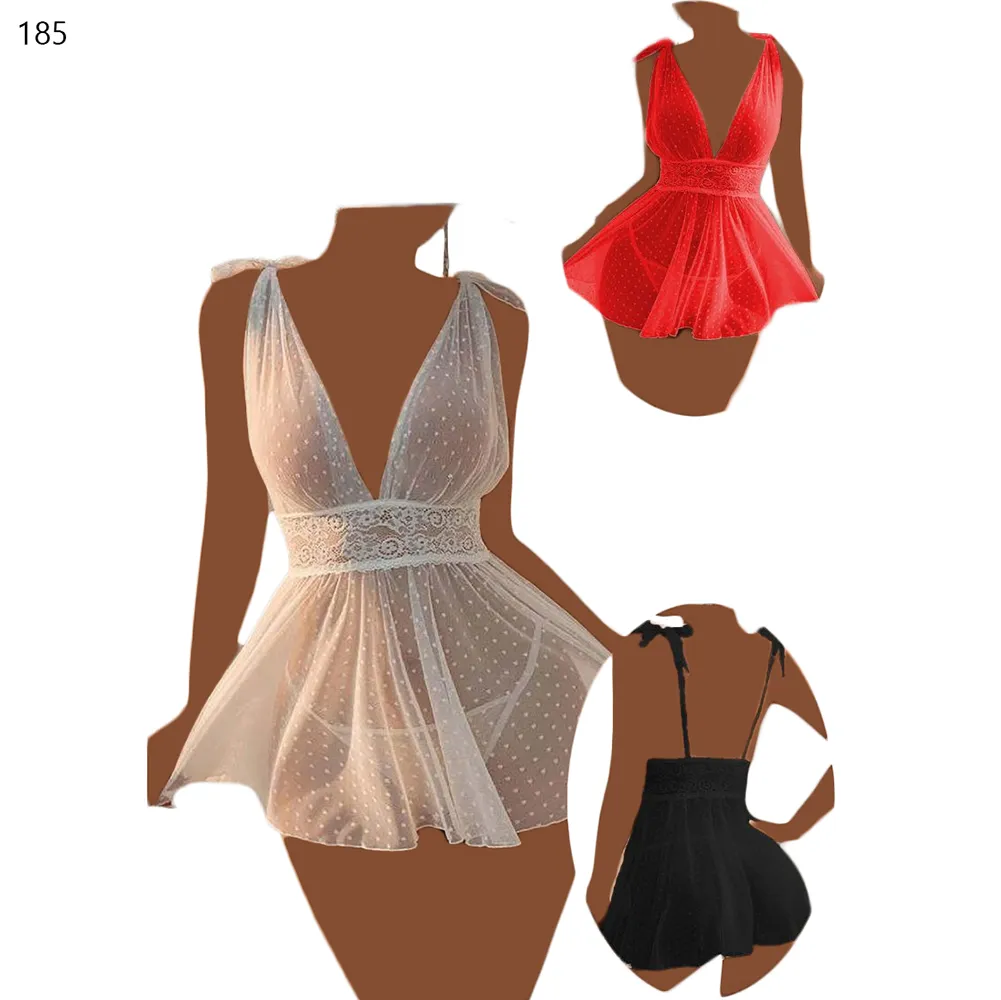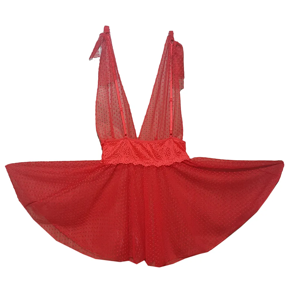 لباس خواب زنانه توری خالدار Delwin کد ۱۸۵ (لباس زیر فانتزی عروس)