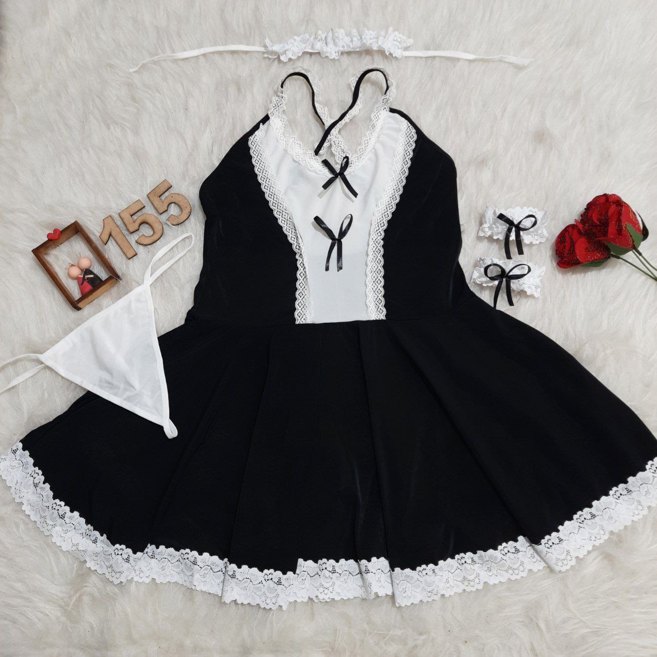 لباس خواب یا کاستوم خدمتکاری دامنی با بند ضربدری Delwin کد 155