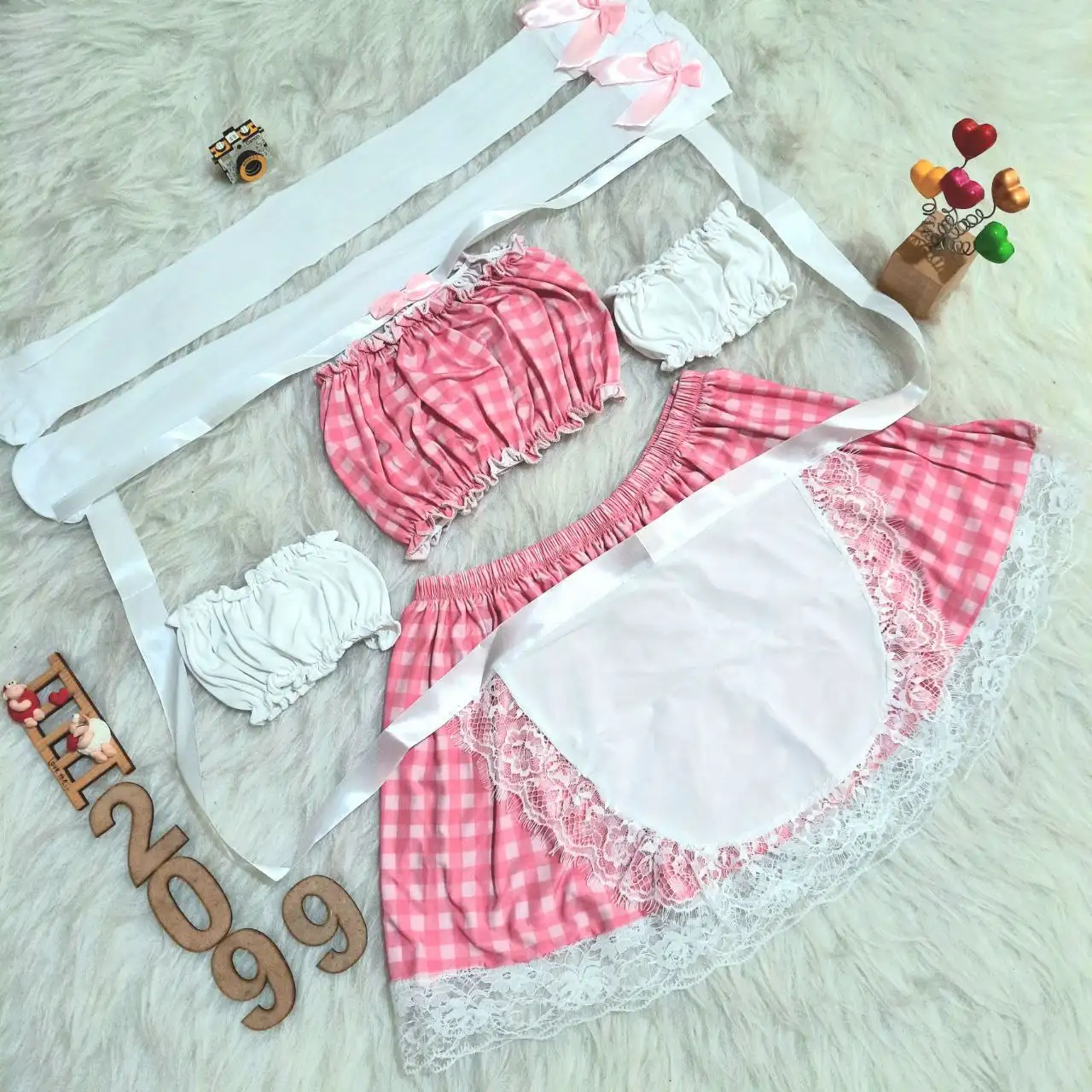 - 6 تکه(با جوراب، پاپیون، بازوبند و پیشبند)