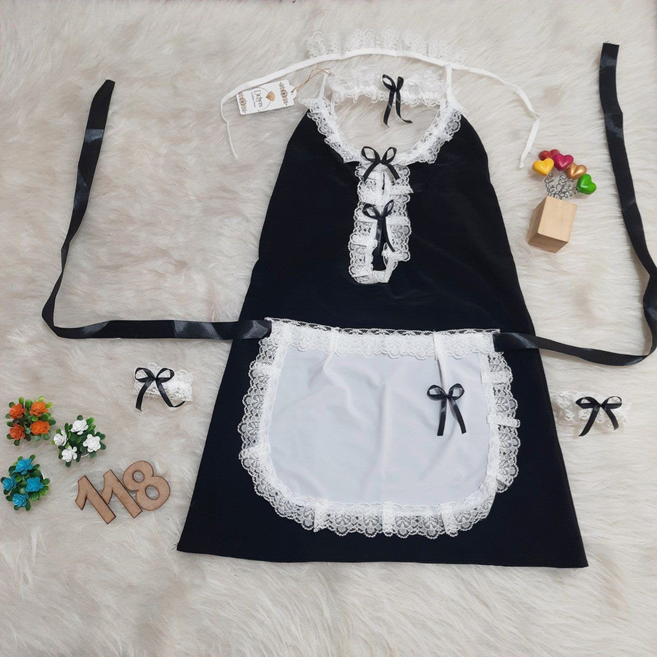 - 5 تکه(با پیشبند، مچبند، تور سر و گردنبند)