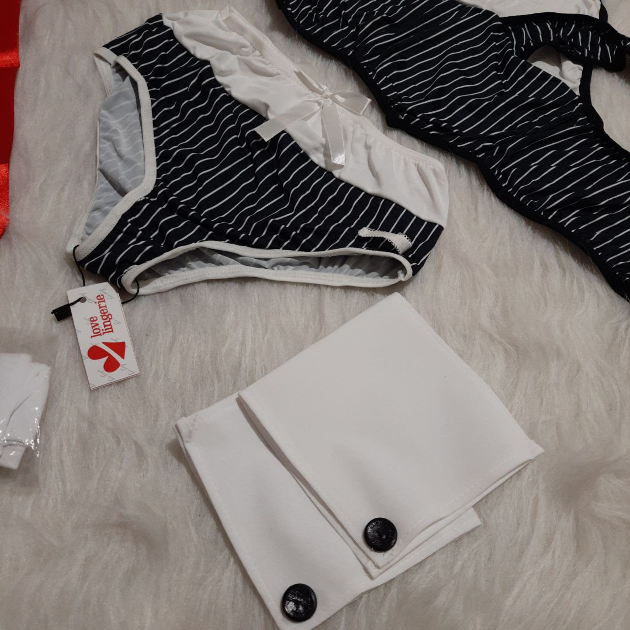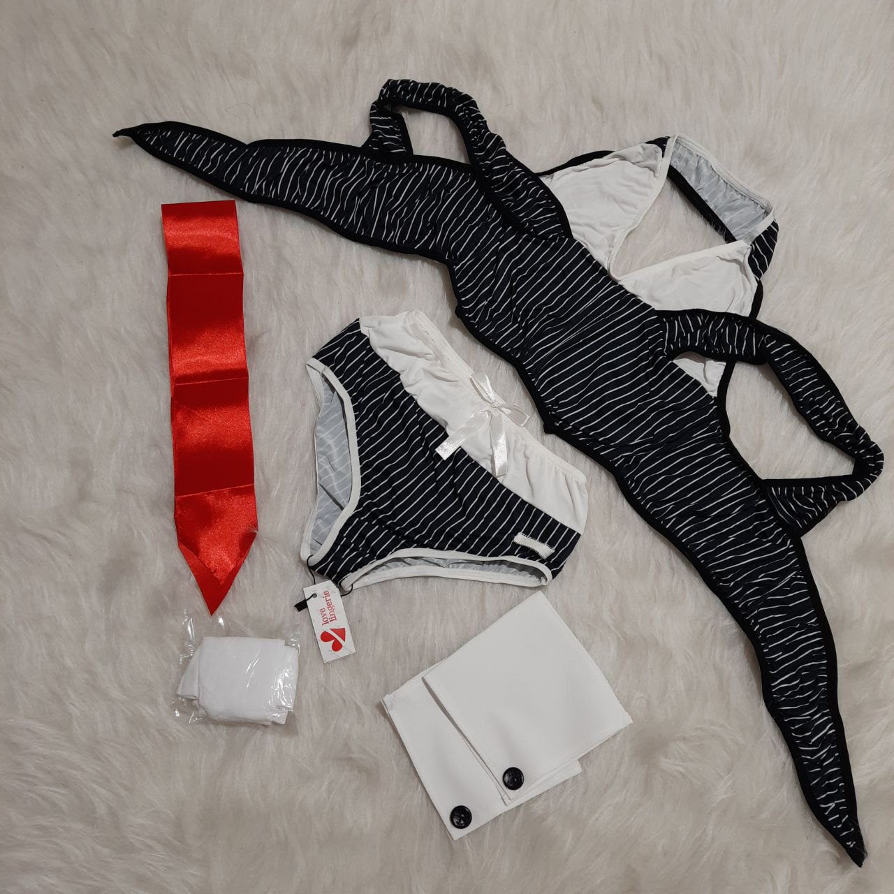 - ۵ تکه (نیمتنه، شورت، جوراب، مچبند و کروات)
