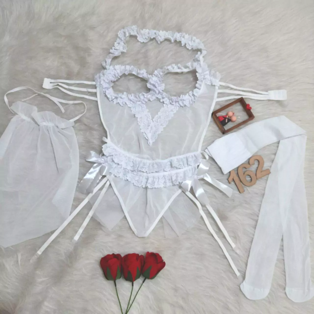 کاستوم یا لباس خواب عروس سینه باز Delwin کد 162